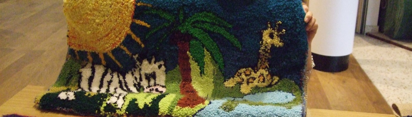 Gemma, aged 8 from Perth in Western Australia, has been doing latch hook work with her local craft club and made her first piece when she was only 6 years old! The designs are draw out onto Hessian, and then the yarn is looped into place using a special machine which Gemma describes as working “a bit like a whisk – you turn the handle and it loops the thread though the canvas”.