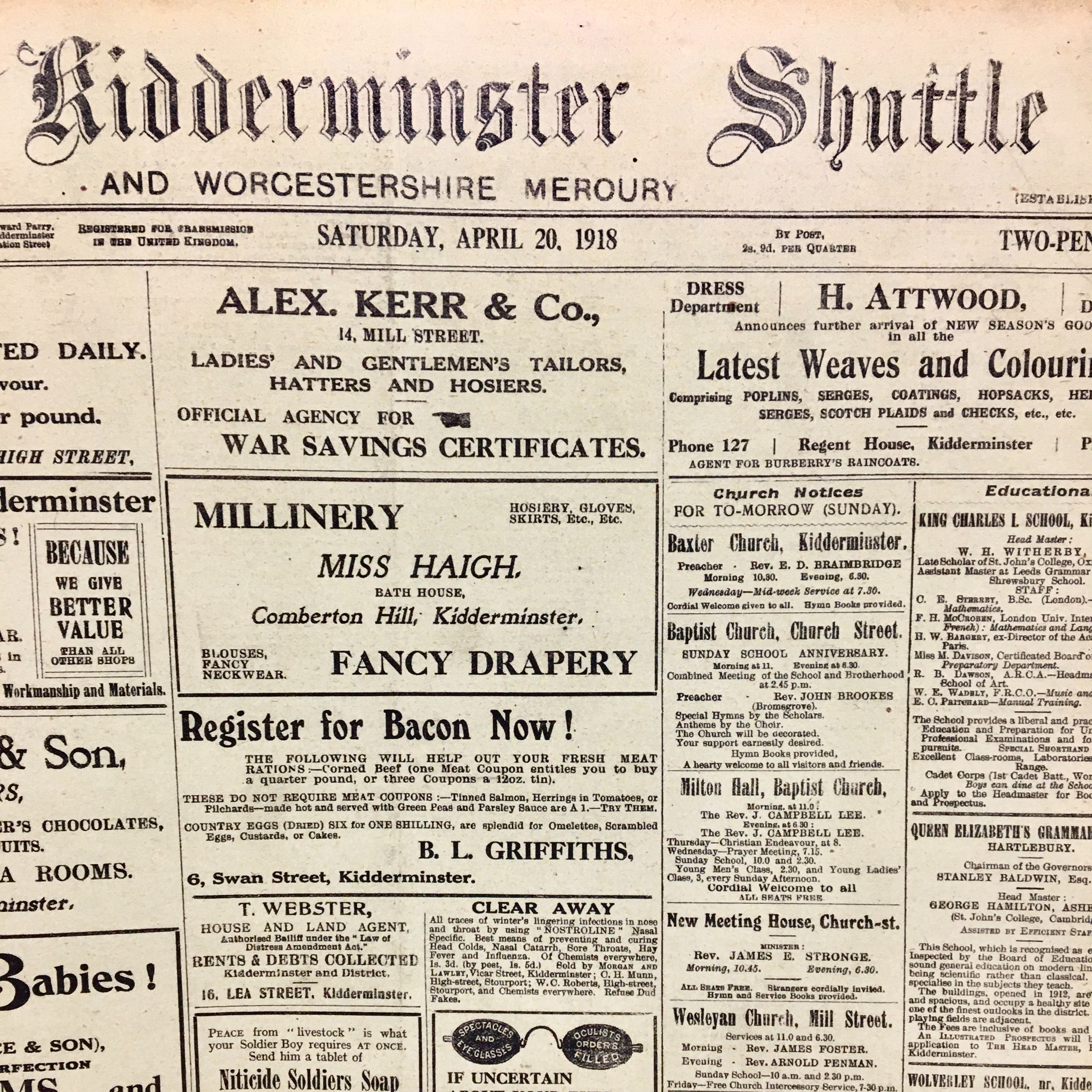 We are also home to the Kidderminster Shuttle newspaper archive, with volumes of issues dating from 1871-1982.