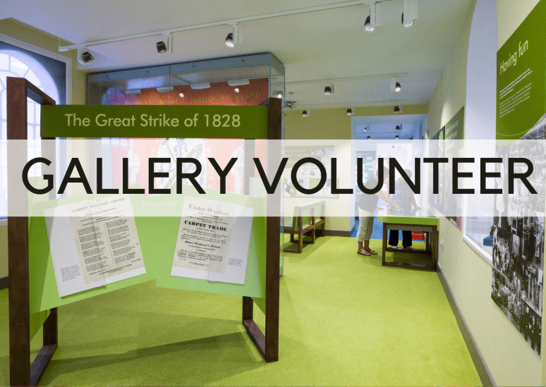 Volunteering at the Museum of Carpet is rewarding and fun. We love adding to our team so if you are keen on meeting new people and are interested in local history please get in touch! Below are some of the roles we are currently recruiting for:
