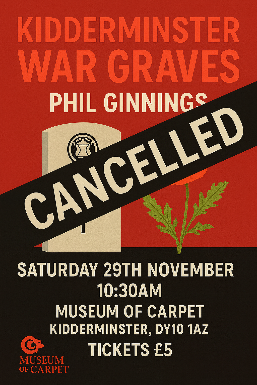 Upcoming Events Unfortunately we have had to cancel the Kidderminster War Graves Talk due to low numbers. Apologies to all impacted.